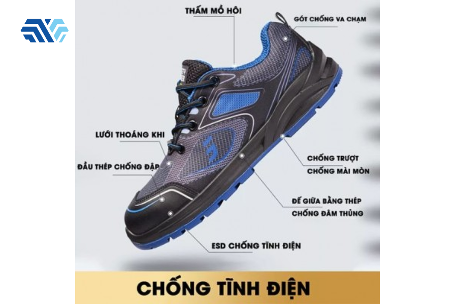 | Giày chống tĩnh điện | EN ISO 20345 – ESD, ASTM F2892 | Giới hạn điện trở trong khoảng 10⁵ – 10⁸ Ω |