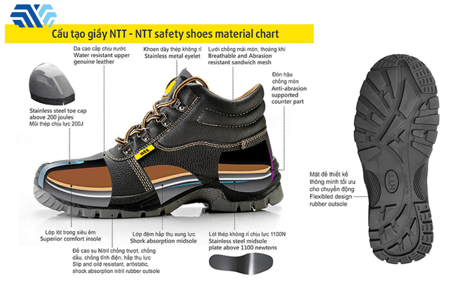 Lưu ý: không nên dùng giày giá rẻ trong môi trường xây dựng, cơ khí nặng, hàn cắt, điện lực, hóa chất.